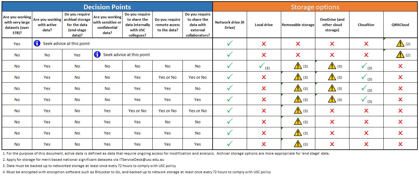 Popular cloud storage options such as Google Drive, Dropbox, iCloud and OneDrive are unsuitable for storing research data.