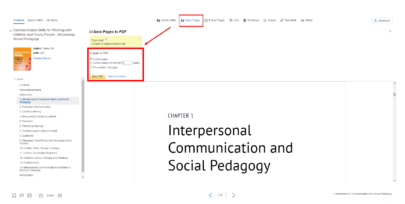 The pages you save will remain as a PDF file on your computer. There are no loan periods for saved pages. This is an example of the PDF file for Chapter 1 of this eBook. If required, you can print the file.