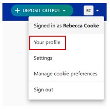 3. If not directed to your profile, click the down arrow next to your initials in the top right corner, and select Your Profile.